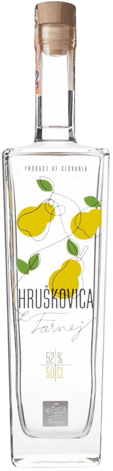 Hruškovica pochádza z ovocného sadu v usadlosti Farná, ktorého základ tvorí pôvodný hruškový sad, v ktorom sa zachovala takmer zabudnutá odroda hrušky Durano. Vzácnosť tejto odrody dodáva tejto hruškovici výnimočnú čistú chuť s výraznou sviežou vôňou čerstvo rozkrojenej hrušky. Klasická stará odroda hrušky dokáže dokonale preniesť svoju plnú ovocnú a lahodnú chuť do destilátu. Plody sú veľmi starostlivo vyberané, kvasia prirodzeným spôsobom a následne sú destilované tradičnou metódou.