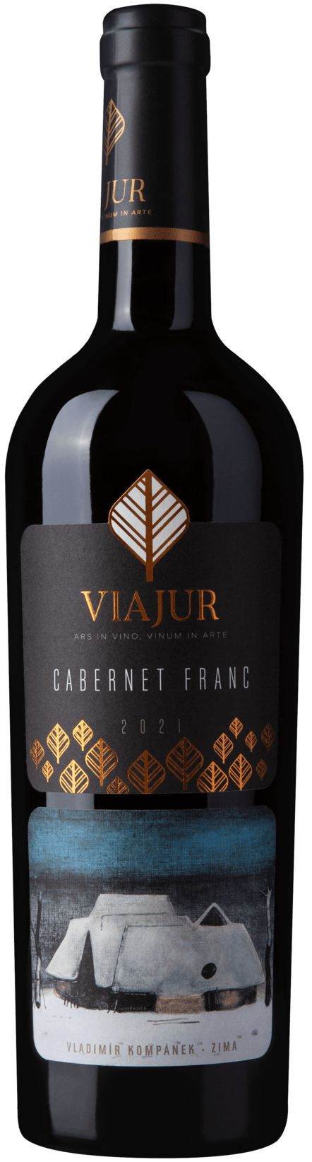 Etiketa, na ktorej je vyobrazené umelecké dielo od Vladimíra Kompánka – Zima odkazuje, že toto víno je ideálny spoločník na dlhé zimné večery.